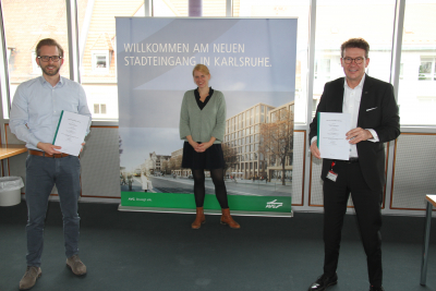 Das Jahr 2021 bringt positive Veränderungen für IREES. Diese Woche haben wir den Vertrag mit AVG-Geschäftsführer Dr. Alexander Pischon für unsere neuen Büroräume im Neubau „Quartier Betriebshof“  entlang der Durlacher Allee unterzeichnet. Wir freuen uns sehr auf die neuen Räumlichkeiten, die IREES ab wahrscheinlich Juni 2021 eine hochwertige und energieeffiziente Infrastruktur und hervorragende Verkehrsanbindung bieten werden.