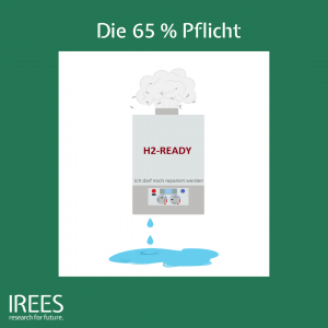 Unter dem Stichwort „Technologieoffenheit“ wurde im Vorfeld und wird jetzt viel das Heizen mit Wasserstoff diskutiert. Hierbei ist im Gesetz eine vermeidliche Hintertür enthalten, um weiterhin Erdgas zu nutzen: Dazu muss ein Transformationsplan des jeweiligen Gasverteilnetzbetreibers vorliegen, der eine „verbindliche, vollständige Umstellung der Versorgung seiner Kunden auf Wasserstoff bis zum Jahr 2034“ aufzeigt.