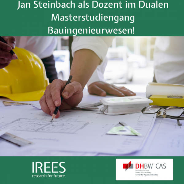 Wir freuen uns besonders, dass unser Geschäftsführer, Jan Steinbach, als Dozent in diesem Studiengang tätig ist! Diese Zusammenarbeit zwischen IREES und der Dualen Hochschule Baden-Württemberg ermöglicht es, akademisches Wissen mit praxisnahen Ansätzen zu kombinieren und neue Impulse für die Bauindustrie zu setzen.