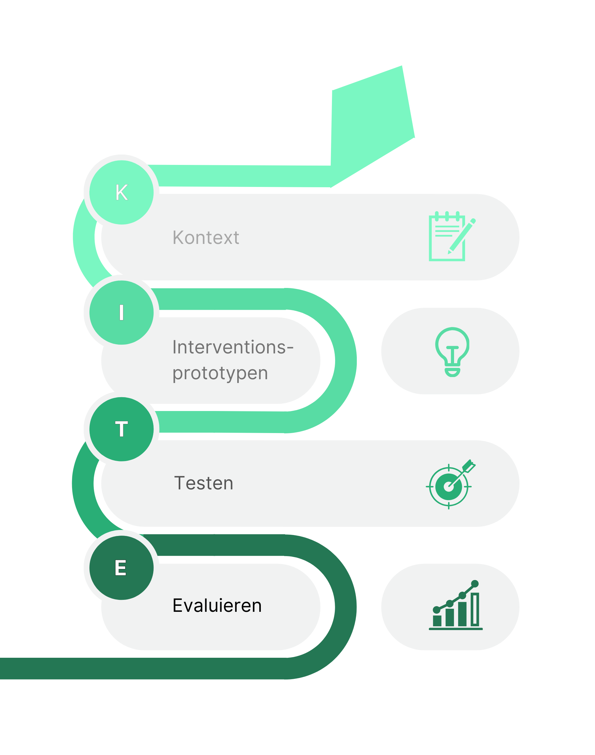 Wir analysieren diese Situationsfaktoren im Kontext, entwickeln einen Interventionsprototypen um diese Faktoren gezielt zu nutzen, Testen ihn und Evaluieren die Ergebnisse.